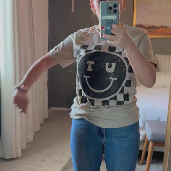 Say it with a smile—The Utah Grins Tee brings bold personality to your everyday lineup. Featuring a checkered graphic with a playful UT smiley face, this soft cotton tee adds a punch of character to any casual look. Layer it under a denim jacket or wear it solo for a laid-back statement that’s equal parts cheeky and cool.