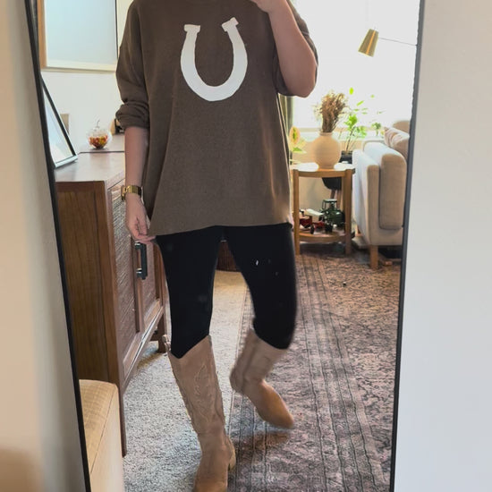 Elevate your wardrobe with the Lucky Girl Sweater, a chic pullover featuring a bold horseshoe motif that adds a touch of good fortune to your everyday style. Crafted for comfort and designed to keep you cozy, this sweater is perfect for layering during cooler days or making a statement on its own.
