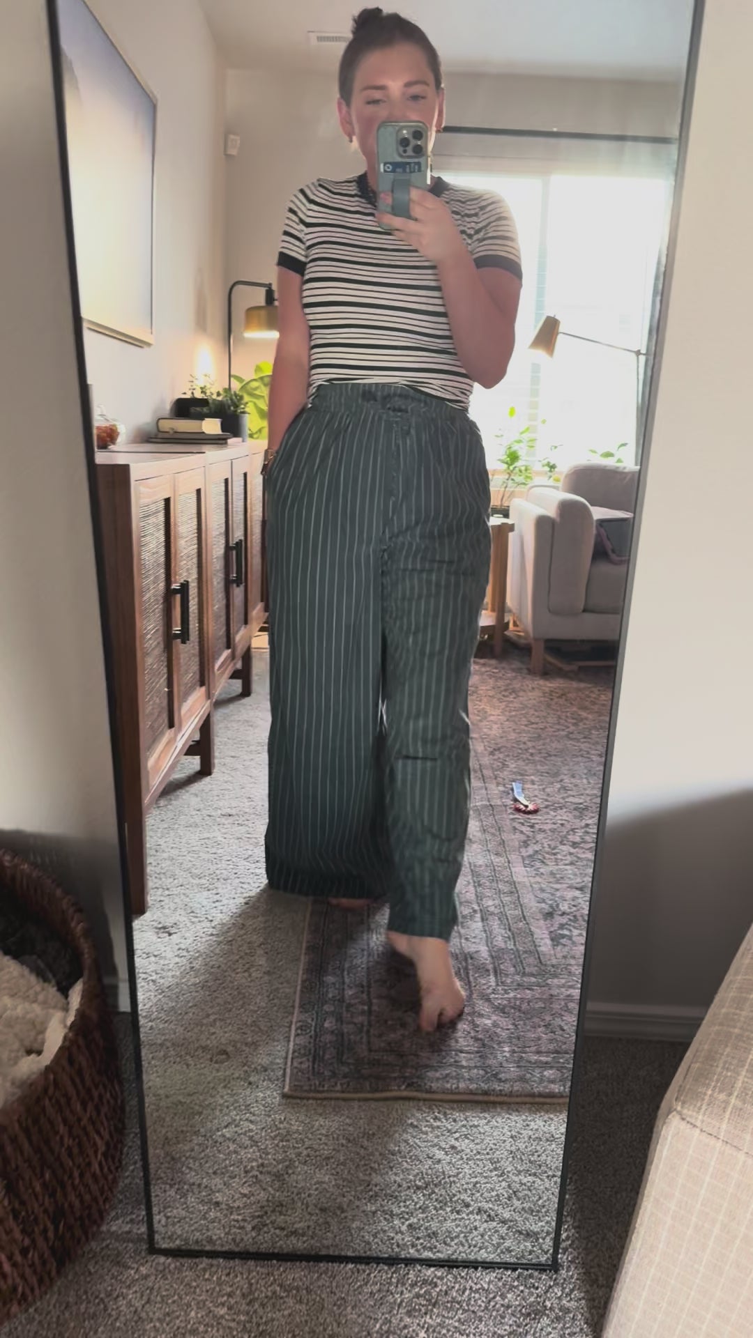 These striped corduroy Kass Pants offer a cozy yet stylish fit with a wide-leg cut and stretchy waistband. Soft and comfortable, they’re perfect for layering with knits or tees. Deep pockets add practicality, making them ideal for relaxed days or casual workwear.