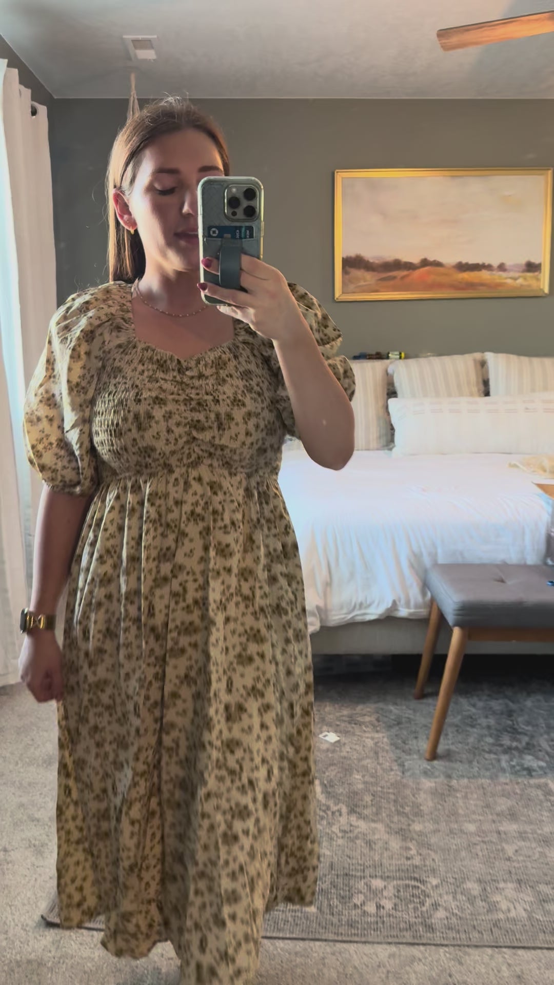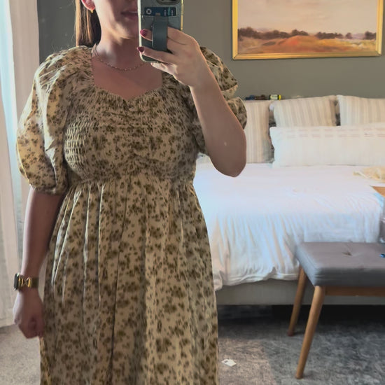This dress has convenient pockets, elegant puff sleeves, and a charming sweetheart neckline, this dress combines style and functionality perfectly.