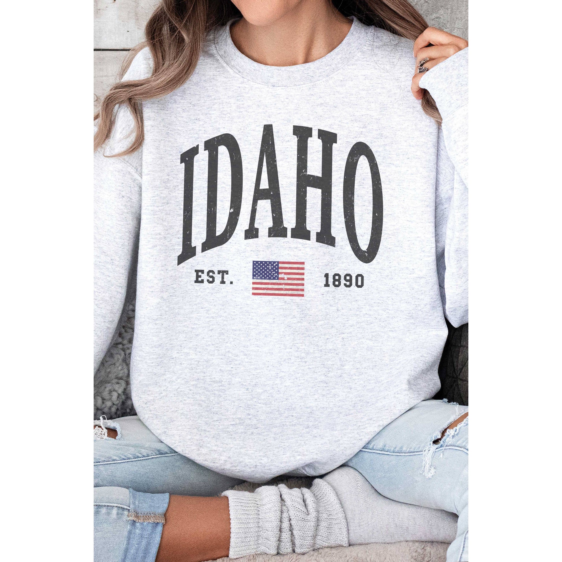 Show your Idaho pride with this oversized graphic sweatshirt featuring the USA flag. It’s designed for comfort and long-lasting wear. The air jet yarn gives it a super soft touch and keeps pilling at bay. With a unisex fit that’s relaxed and roomy, this heavy fleece makes layering a breeze, keeping you comfy no matter the season.